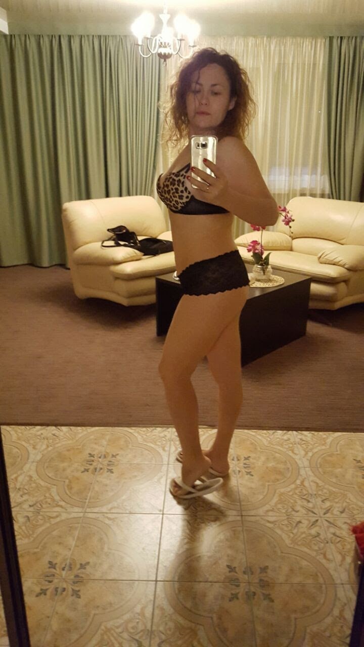 Красотка жена позирует перед камерой в красивом нижнем белье и полностью голая показывая свою красивую грудь и мокрую от возбуждения пизду.