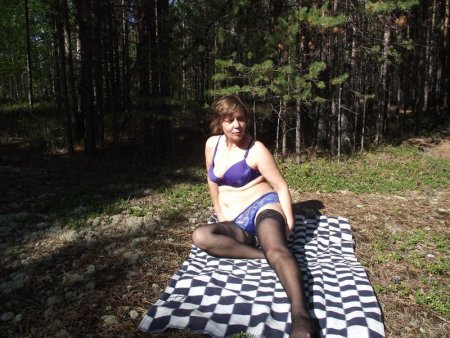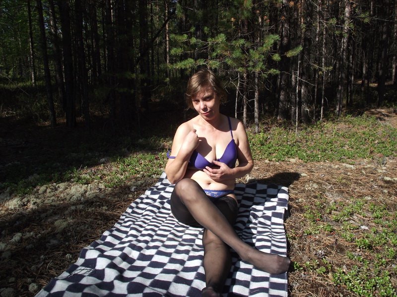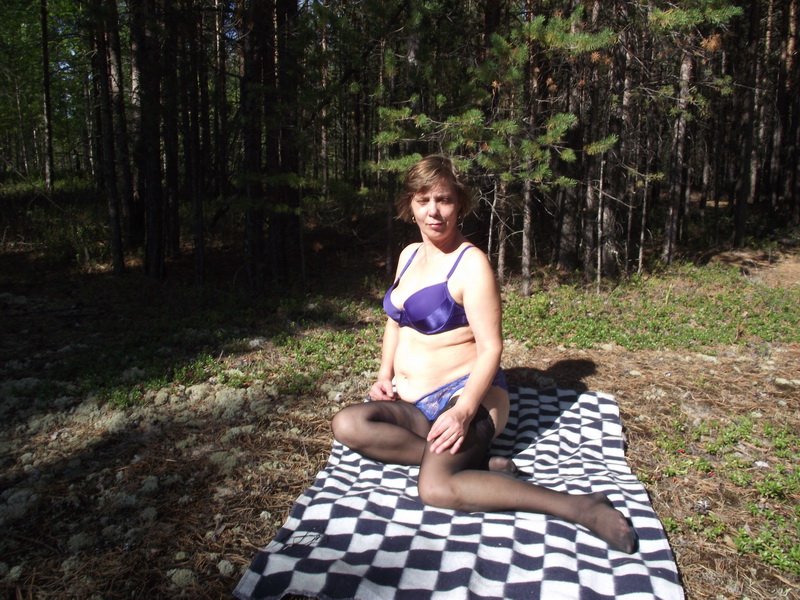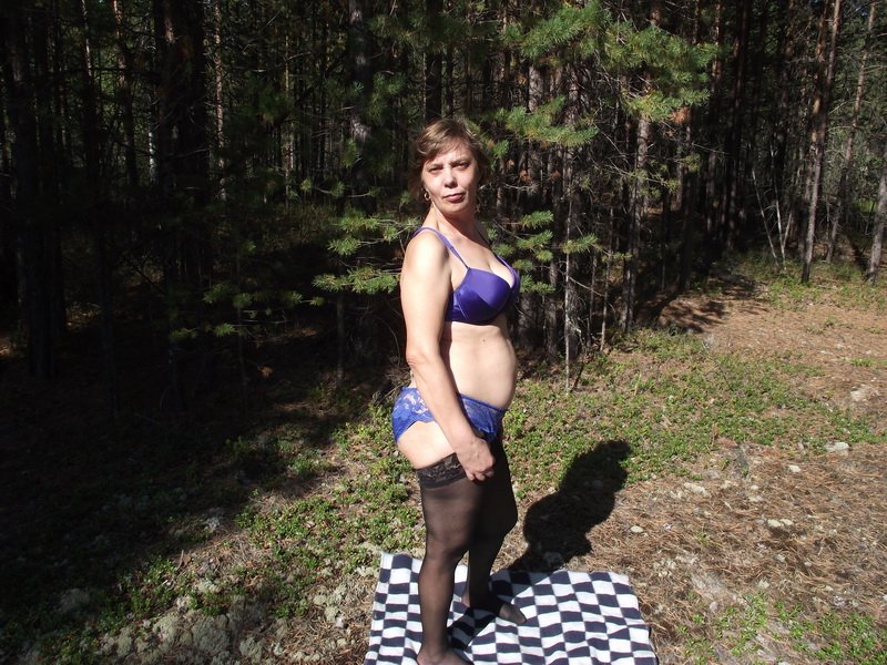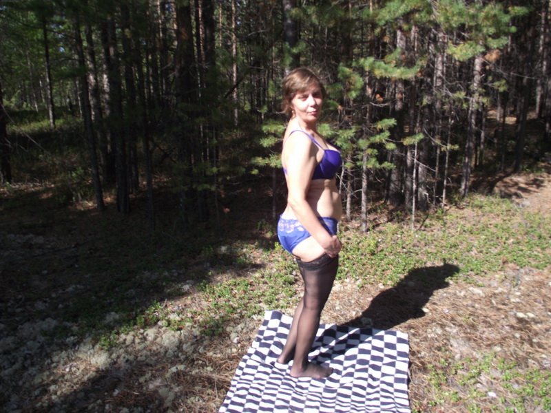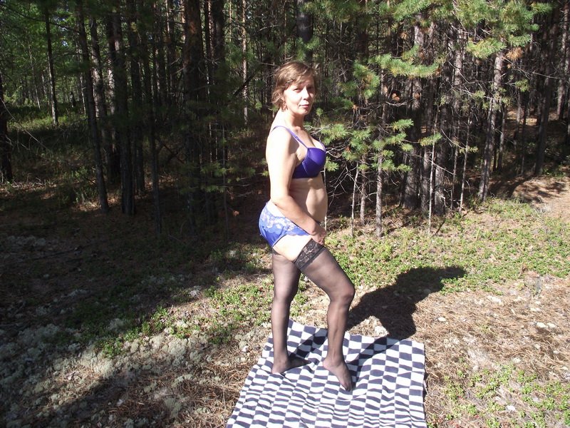 училка Ирина позирует в лесу в нижнем белье и полностью обнаженная
